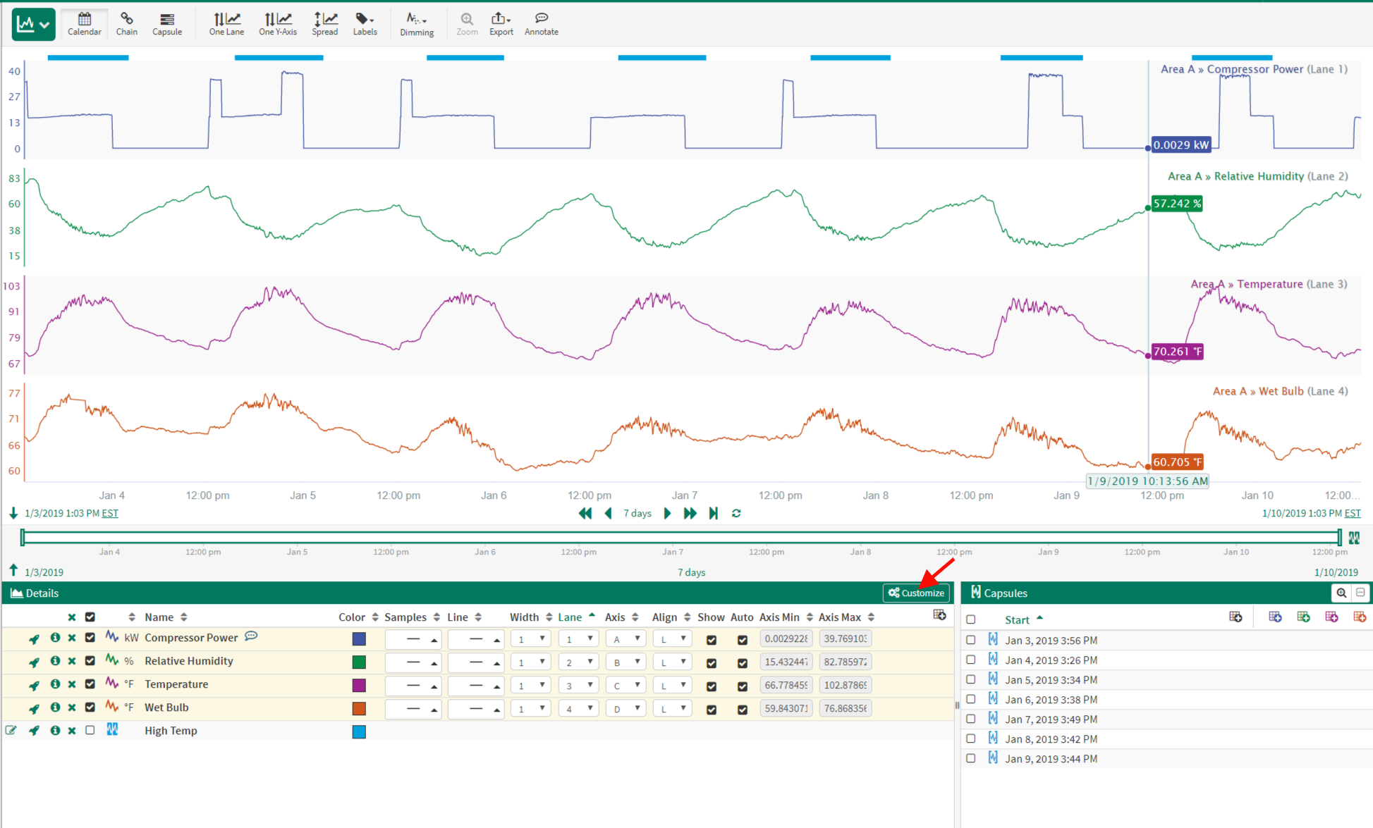 Users can add capsule properties to the Capsules Pane to display the property on each capsule.