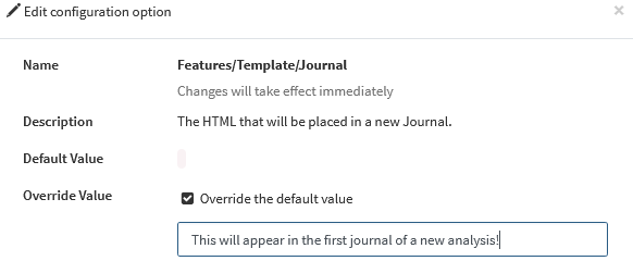 Admins may configure a default template for the first journal in each workbench analysis.