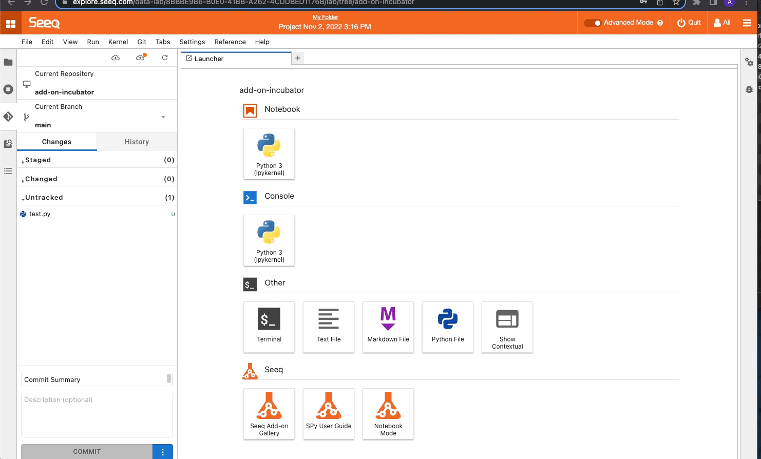 Seeq Data Lab’s Advanced Mode offers Git integration via a user interface to create, manage and organize your Data Lab notebooks and files with a remote Git repository.