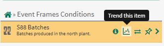 Similarly, connectors like the AF Event Frames Connector can produce hierarchically-arranged Items, so that one Item is the direct parent of other Items. For example, a Condition Unit Procedures could be the direct parent of a set of Conditions: Operation1, Operation2, etc. In this case, all of the usual buttons seen for an Asset will be included in the search result for the parent Item, and interaction with the search result will generally be just like interaction with an Asset, with the addition of a "Trend this item" button: