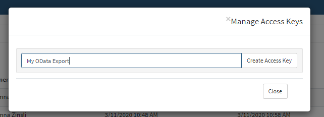 Access Keys allow users to authenticate scripts and OData when using Windows, LDAP, or OpenID Connect authentication. Note that Windows Authentication and LDAP support OData export to Power BI and Excel, but users working with OData receivers that are not a Windows product will be able to authenticate with the Access Key and associated password.