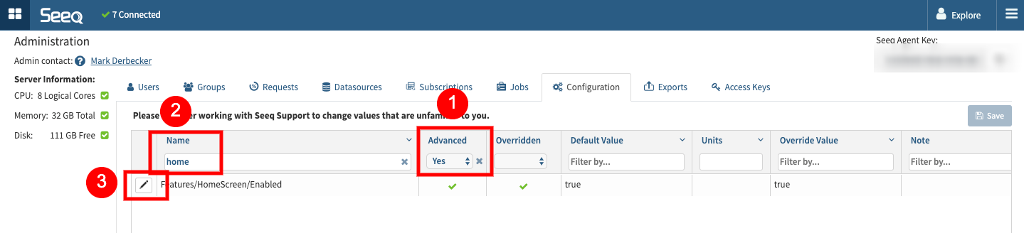 Admin users can enable particular Seeq features for all users on a server by making changes in the central configuration page.