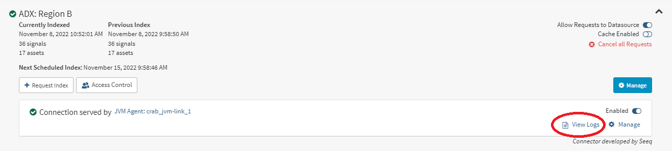 will show you the last 100 failures made by the Seeq application. This is useful for queries that are not executing correctly. Note, this will not include connectivity errors such as ConnectTimeoutException as ADX will not know that the query was even attempted.