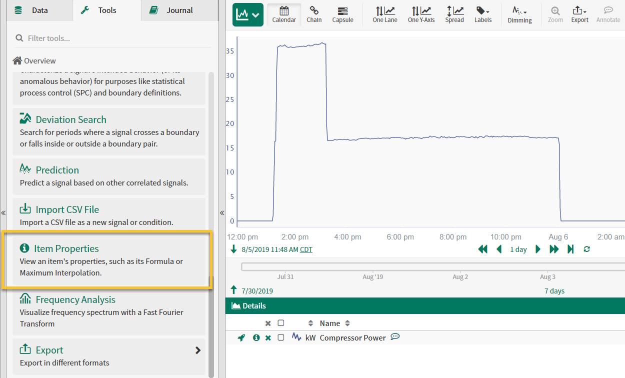 Scope and permissions may be viewed or configured on Items used within an Analysis (such as a Signal or Condition) through the Item Properties panel.