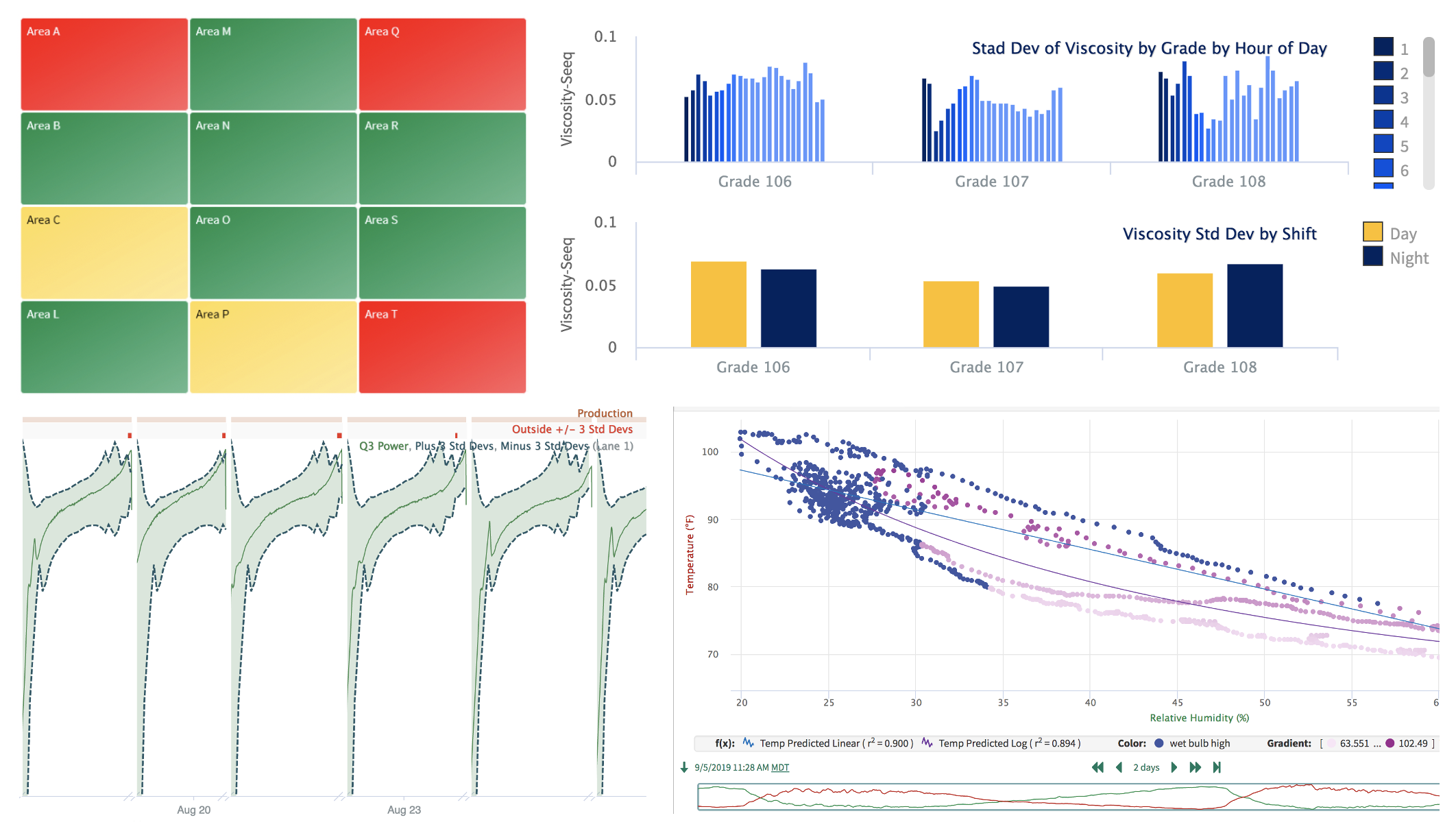 Seeq also features XY plots, bar graphs, tables, a variety of built-in chart types, asset tree maps that show you alerts occurring across groups of similar units, various "event" views, & more.