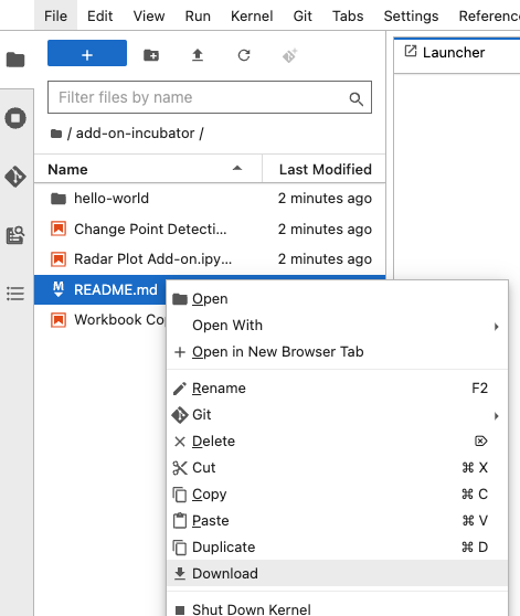 Right click on the file you wish to download, and select “Download”