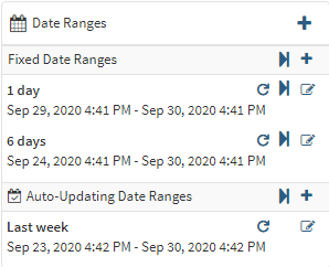 button that can be used to update all auto-updating date ranges such that the date ranges will end at the current time. Selecting this button at the top of the Auto-Updating Date Ranges section will apply this change to all auto-updating date ranges.