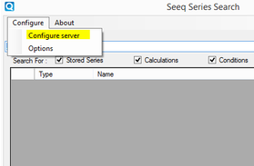 The Seeq Server settings can be configured from "Configure server" on the "Configure" menu as shown below