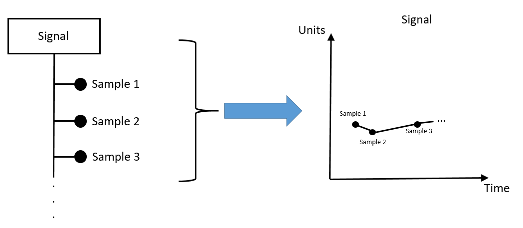 A Signal is an ordered-by-time collection of samples. A Signal is used by virtually every aspect of Seeq; a common use is visualization of the signal by plotting the samples. Each signal also has a collection metadata or properties. This metadata includes things such as data source, unit of measure (UOM), and description.