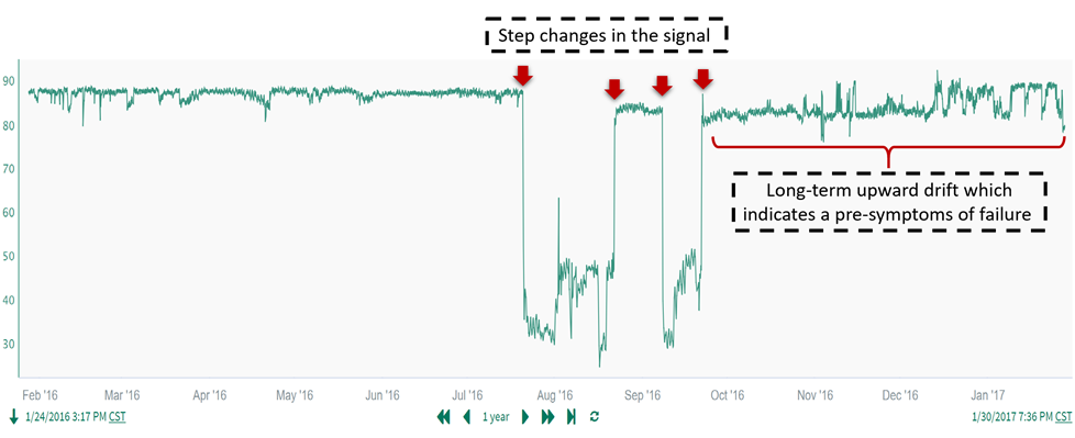 Examples of step change and long-term drift features are shown here: