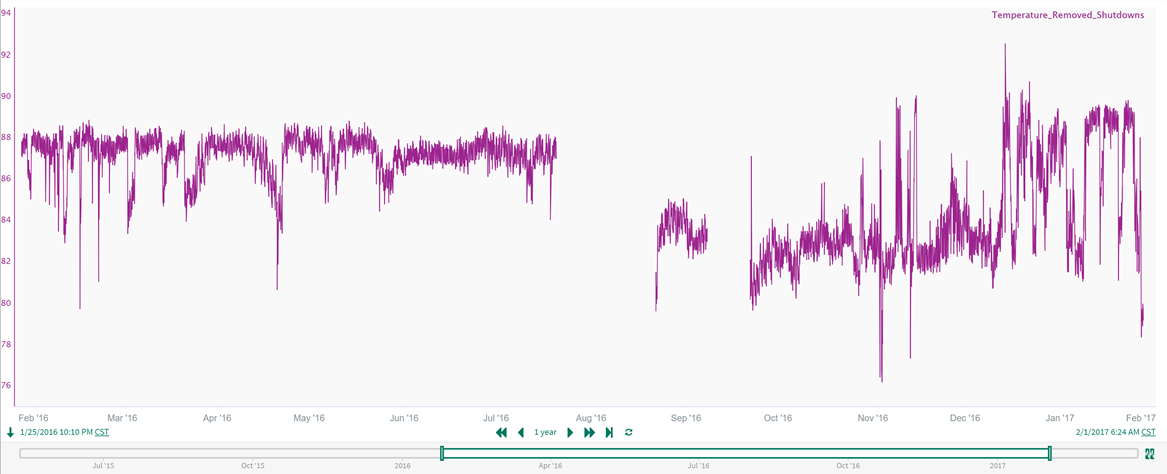 • Use the Formula Tool to remove the shutdown time periods from the original, unfiltered temperature signal