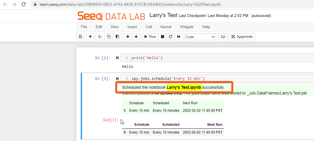 Open the notebook and run the cell to schedule the notebook.