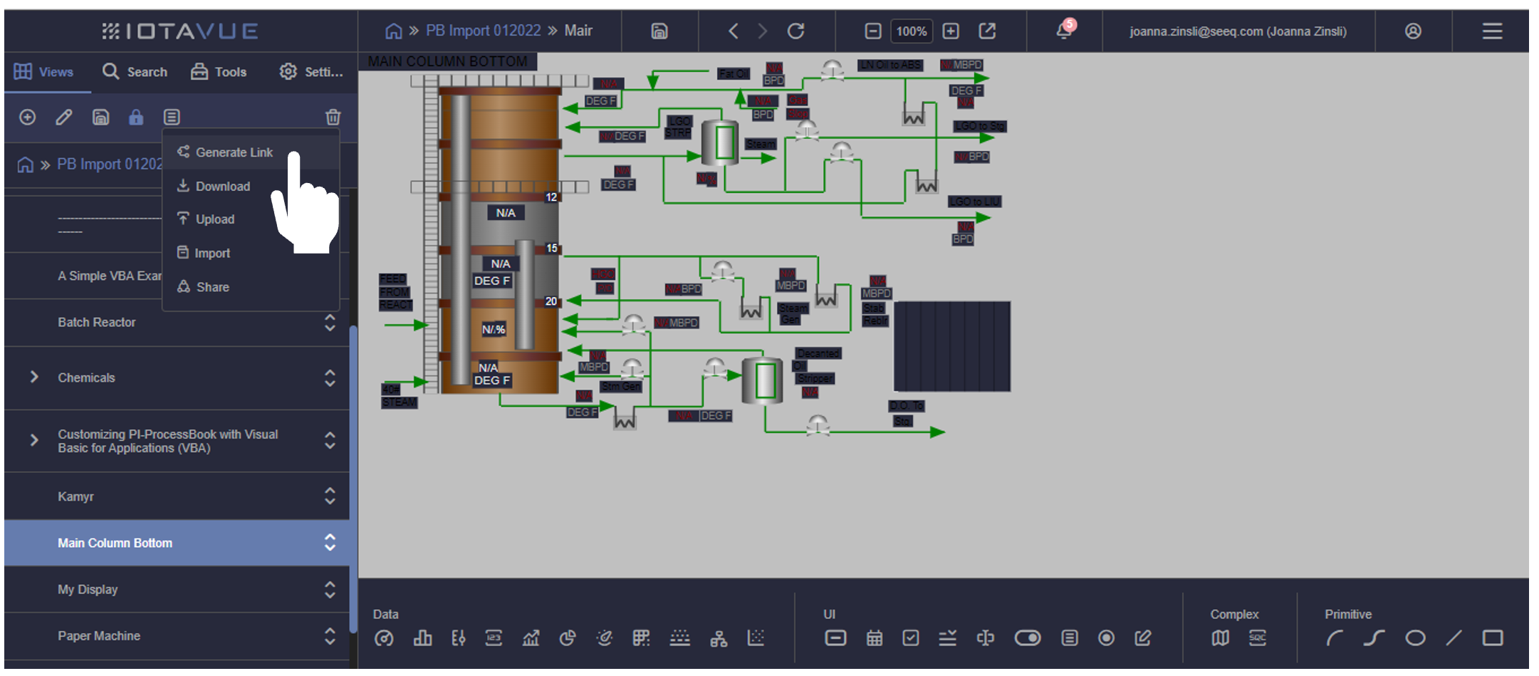 From the Views pane in IOTAVue, navigate to the menu icon and select Generate Link