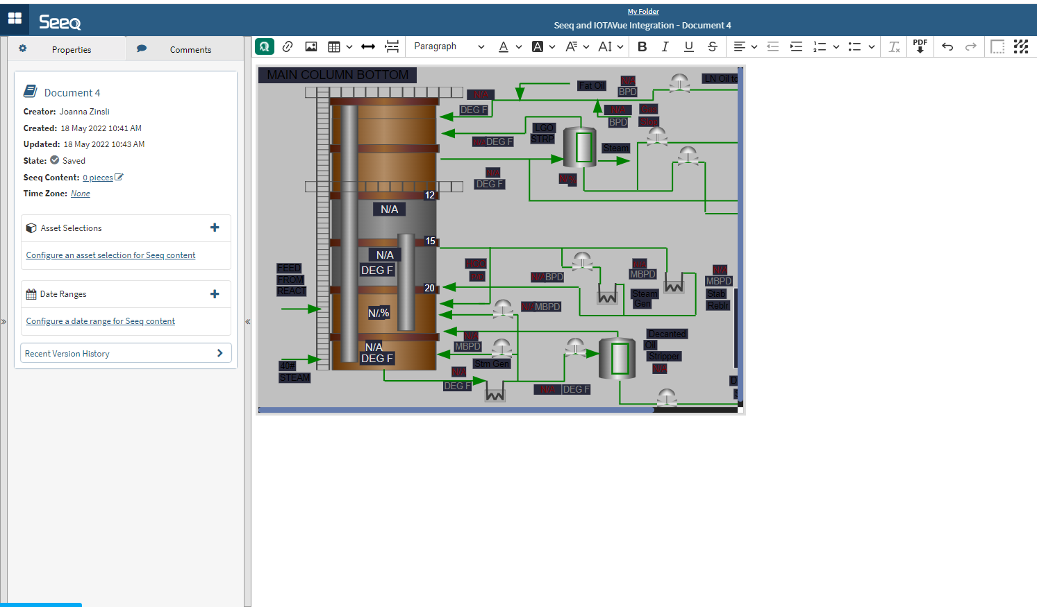 Customers of IOTA Software can insert an IOTAVue display into a Seeq Organizer Topic.