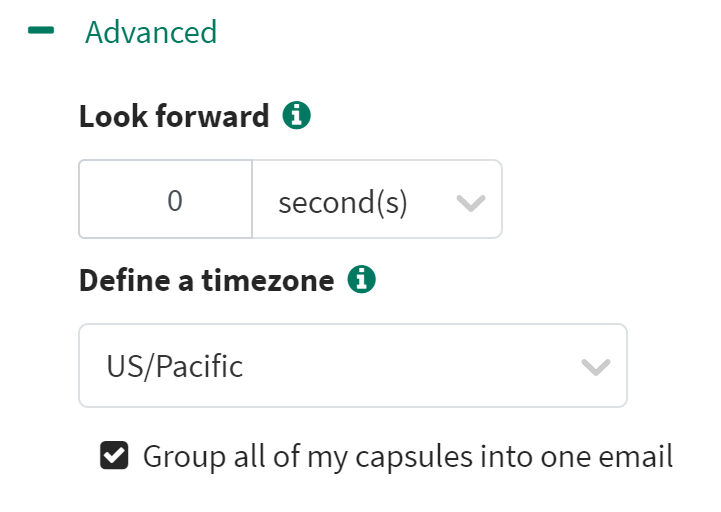 Define a timezone: This is the timezone that will be used for timestamps in the email (i.e. start and end times of capsules).