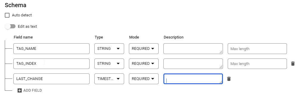 We are going to use two tables : one table for tag names and another for tag data. The tag_table.csv file has the following columns: