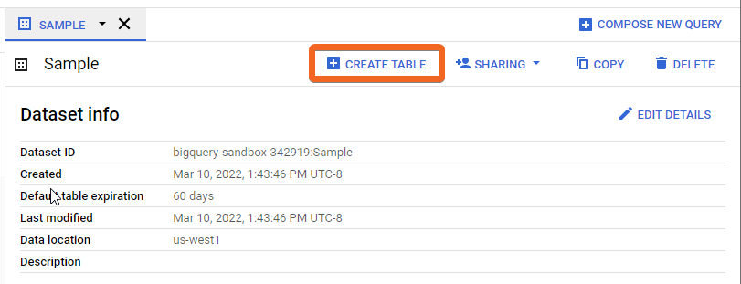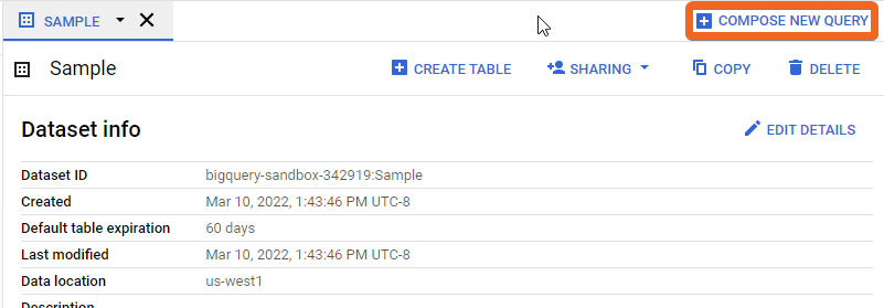 Open the Sample dataset and click COMPOSE NEW QUERY.