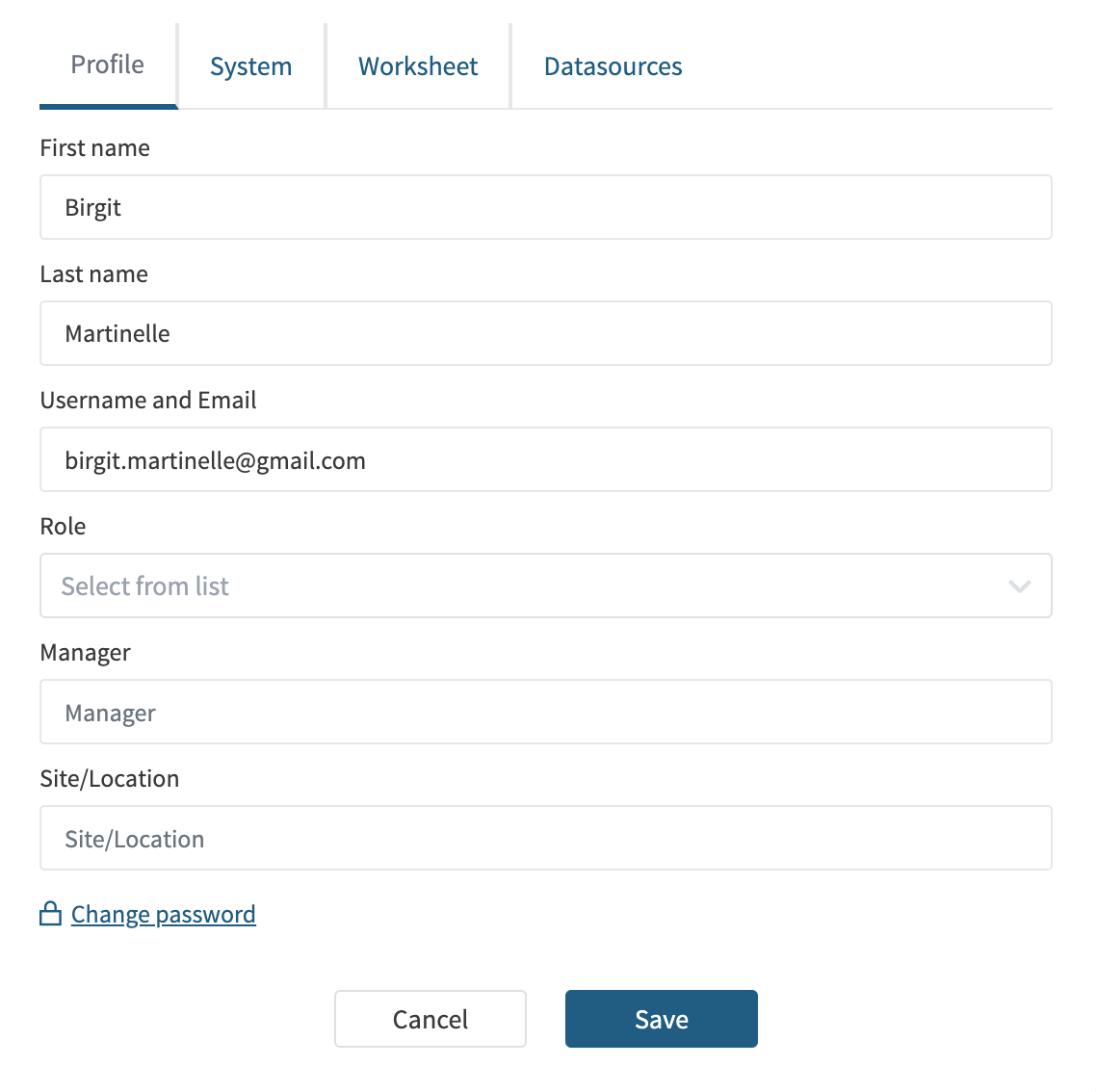 Edit your First & Last Name, the email address associated with your Seeq account, your Role, your Manager and your Site or Location.