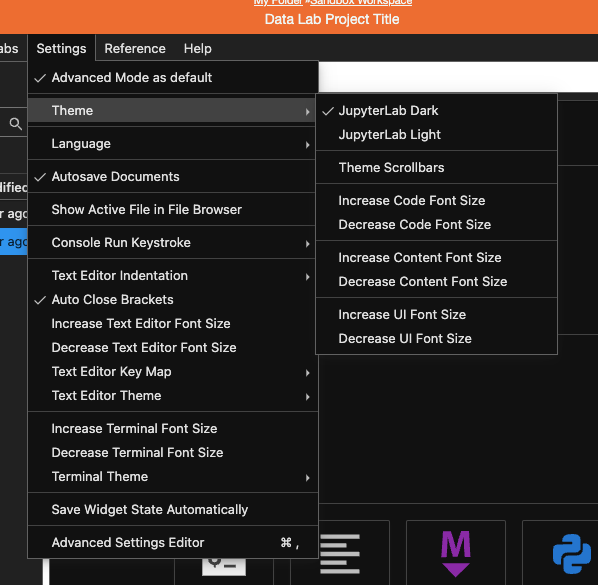 The Advanced Mode looks a bit different from the classic Notebook view. Here is a brief description of what some things are and what they do. More information about the JupyterLab Interface can be found on their site — The JupyterLab Interface.