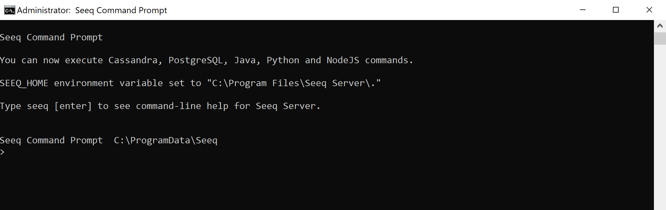 You are now in a Seeq Command Prompt window.