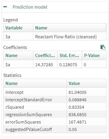 Before proceeding further with analysis, the user performs an intermediate data cleansing step to remove a high spike in the Reactant Flow Ratio. The user judges this to be the the only outlier data that needs to be removed: