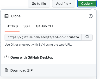Retrieve the HTTPS url of the repository you wish to clone. If using GitHub, open the repository’s home page and click the green <> button, select HTTPS, and copy the url provided.