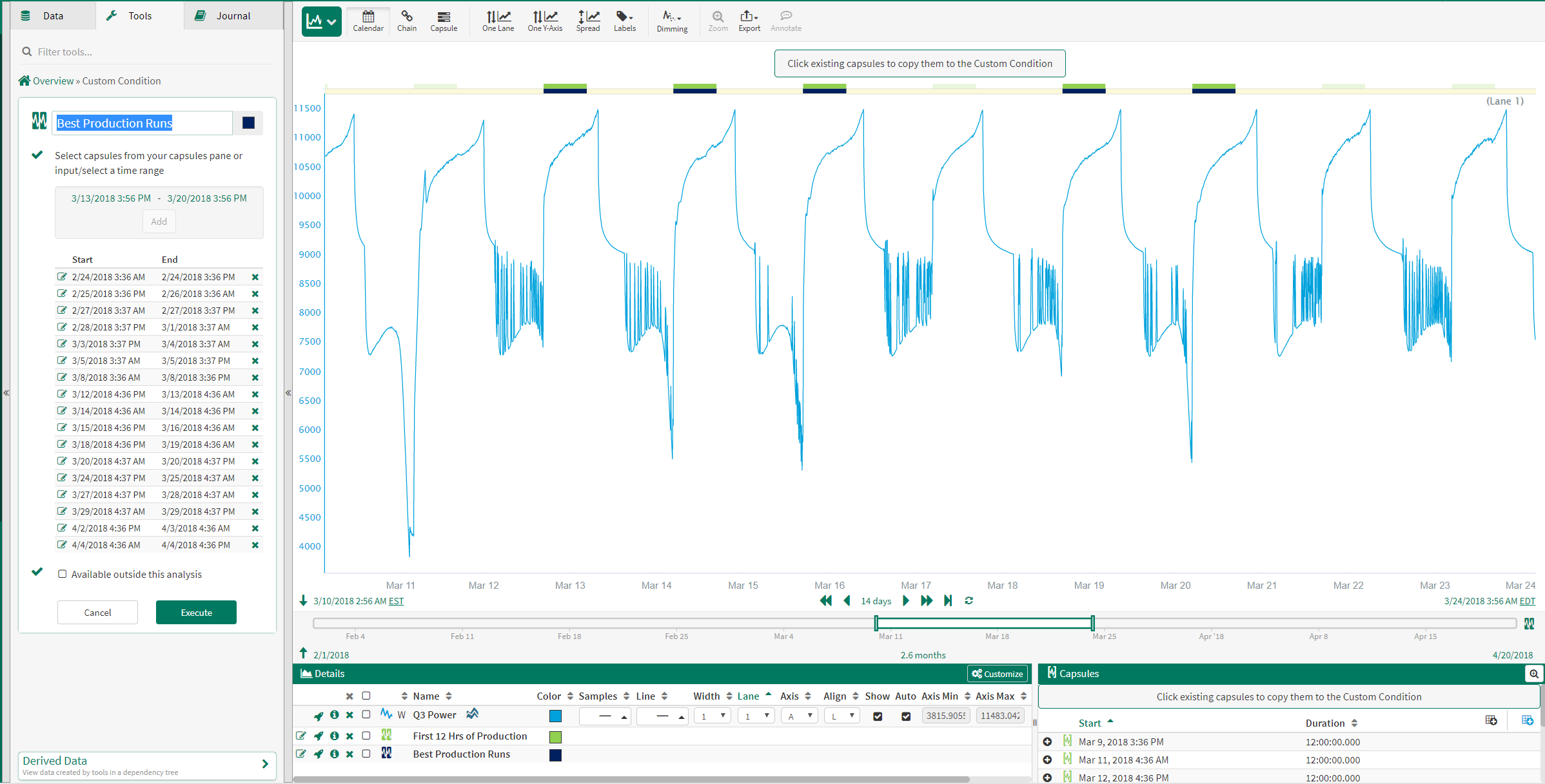 The best production runs are manually selected using the Manual Condition tool. The capsules in the this 'Best Production Runs' condition will be used to create the Reference Profile.