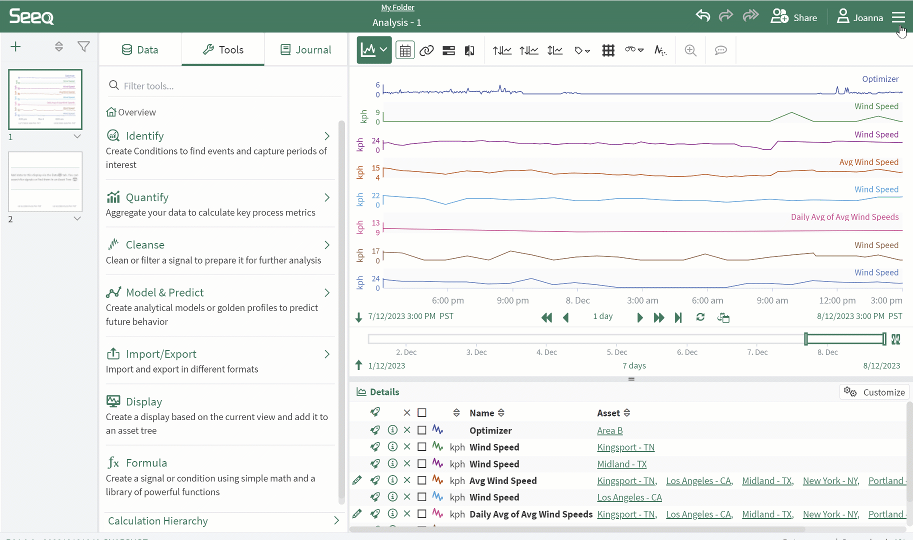 Username Filter - lets a user filter entries by specific Seeq users. Type in user name or email to search and select multiple Seeq users. Hovering over Item ID and user ID values reveals full values.