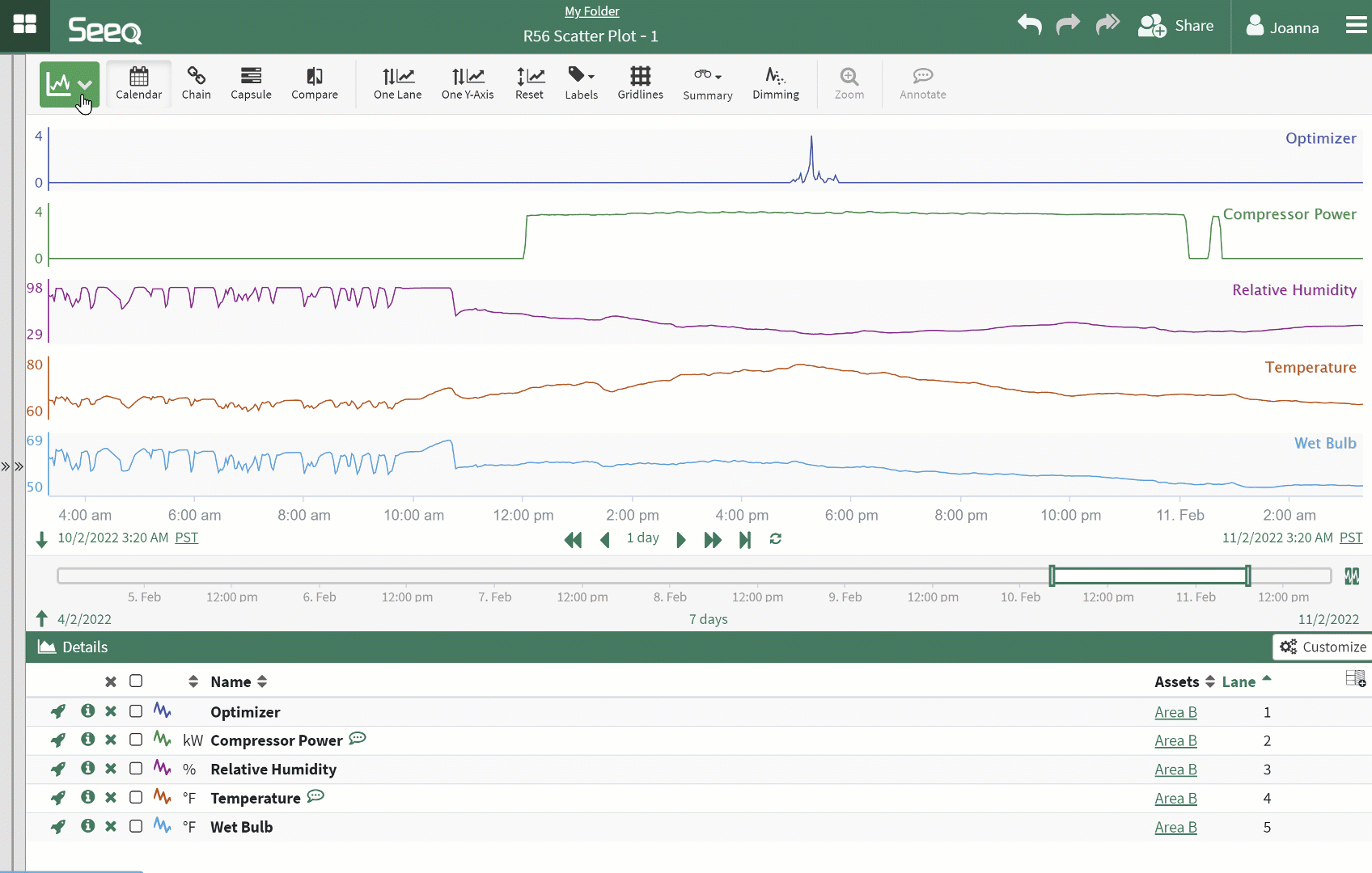 Any signal present in the Details Pane may be selected as either the x- or y-axis signal. The swap button will change the x- and y-axis selections. Signals can be assigned to an axis in either the toolbar or the Details Pane.